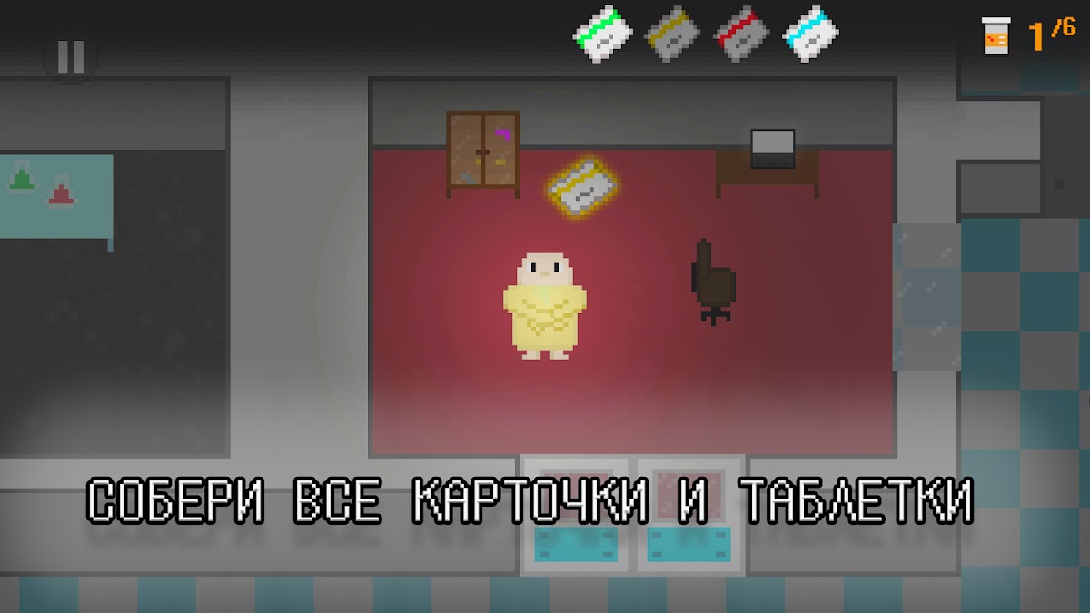 Попытайтесь собрать все таблетки и карточки, чтобы сбежать