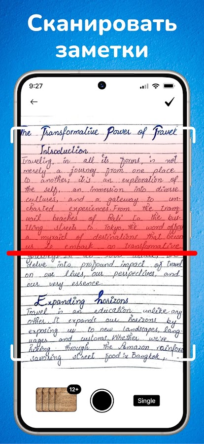 Снимайте рукописный контент с помощью камеры телефона или загружайте существующие изображения для мгновенного преобразования.