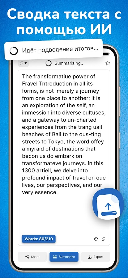 Резюмирование текста с помощью ИИ использует искусственный интеллект для сокращения длинных текстов путем извлечения ключевых моментов. Оно помогает пользователям быстро извлекать важную информацию из статей, электронных писем или документов, используя обработку естественного языка для четких и лаконичных резюме.
