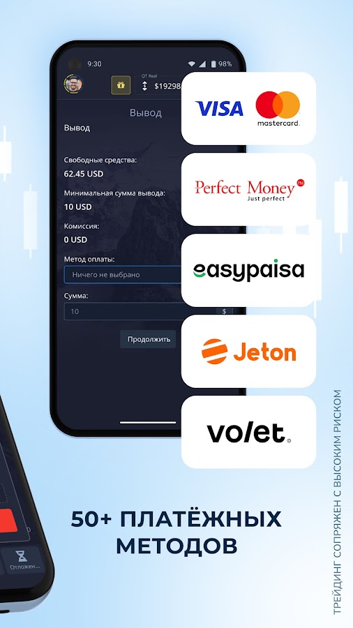 Откройте для себя все возможности Pocket Option Broker в режиме реальной торговли. Вносите и выводите средства быстро и легко, выбрав удобный для вас платежный сервис. Выбирайте надежных глобальных и локальных провайдеров, которые идеально соответствуют вашим запросам.
