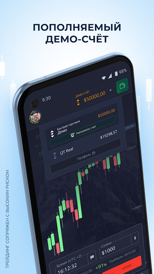 Практикуйтесь в инвестициях, используя виртуальные деньги, и пополняйте свой демо-баланс в один клик. Это лучший способ познакомиться со всеми возможностями приложения без особых усилий.