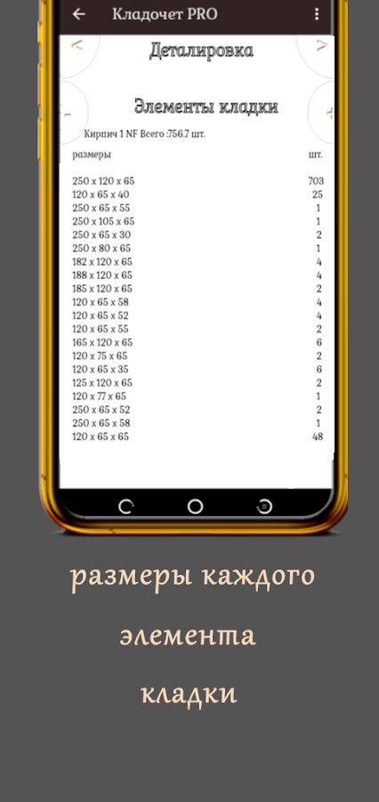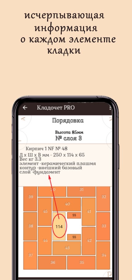 Размеры и полная информация о каждом элементе кладки