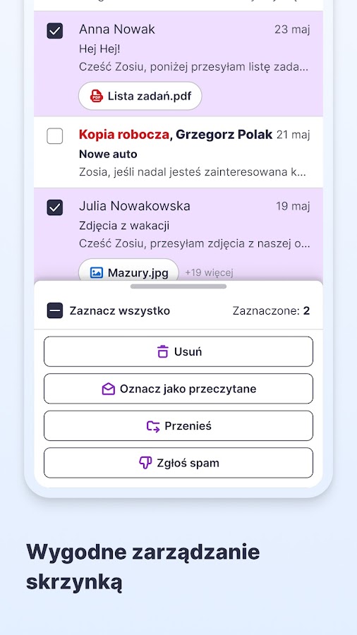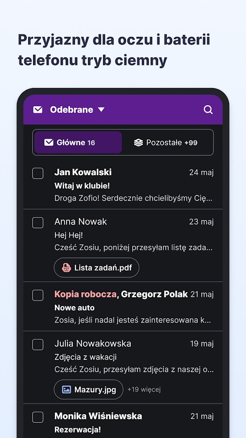 Понятная структура и внешний вид приложения позволяют эффективно использовать все функции Poczta o2.