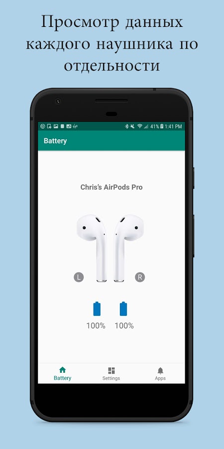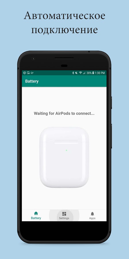 ПРИМЕЧАНИЕ. Приложение не работает с некоторыми телефонами Huawei. В некоторых телефонах Huawei отсутствует важная функция Bluetooth 4.0, которая позволяет приложению считывать уровни заряда батареи AirPods.