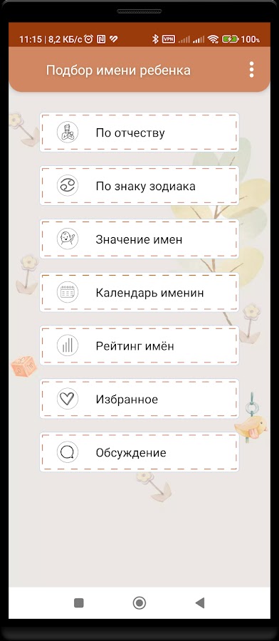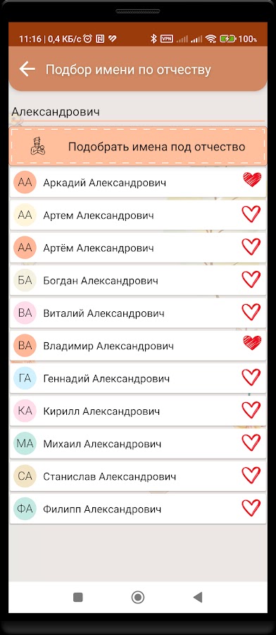 Приложение предложит различные варианты детских имен в зависимости от ваших предпочтений: