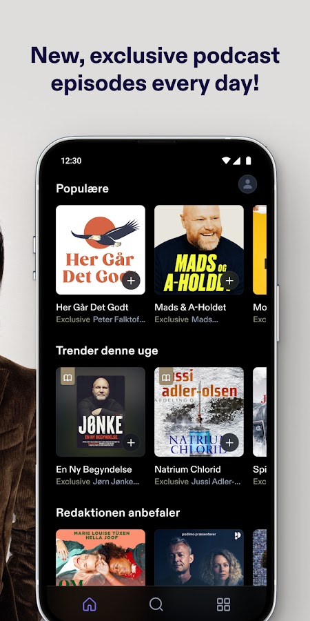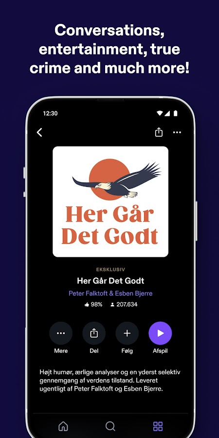 Если вы жаждете захватывающего криминального шоу, ищете легкого развлечения или хотите немного взбодриться после тяжелого дня — Podimo всегда к вашим услугам. Берите наушники и слушайте наши подкасты и аудиокниги во время готовки, уборки или просто отдыха. Благодаря персональным рекомендациям вы легко найдете свое новое любимое шоу и погрузитесь в захватывающие и вдохновляющие истории.