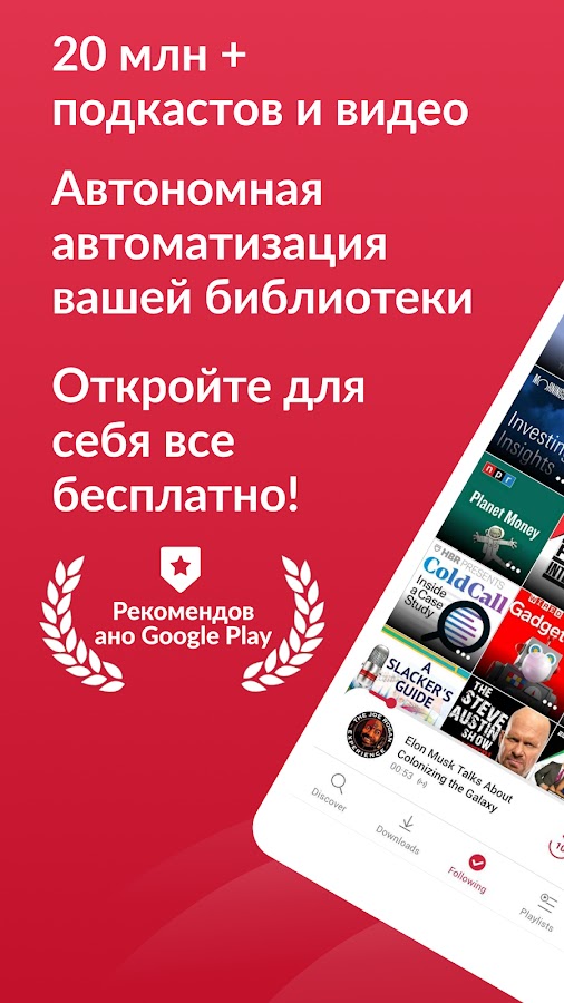 Скачайте приложение Приложение для подкастов для Android бесплатно - последняя версия (7.6.2(27870)) уже доступна для установки на ваш телефон или планшет.