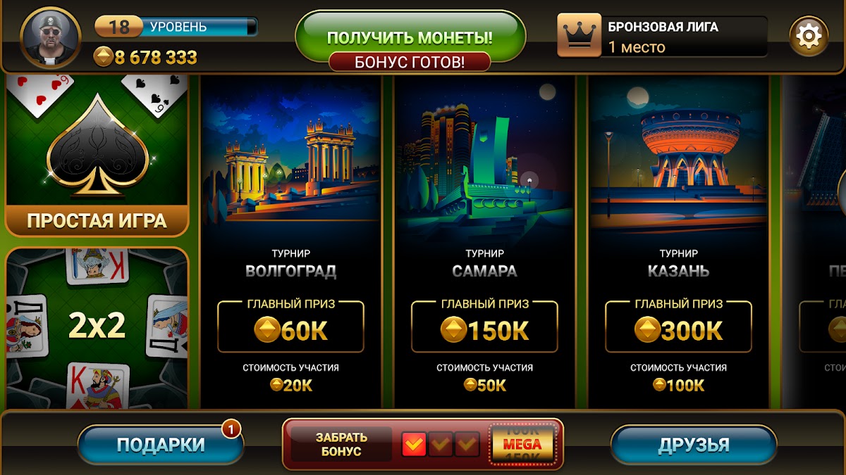 Участвуйте в Чемпионате по самой популярной и всеми любимой русской карточной игре Дурак Онлайн, которая не нуждается в представлении! Пройдите чемпионат-карьеру, выиграйте кубки всех городов: Волгоград, Самара, Казань, Москва, Сочи и станьте Чемпионом!
