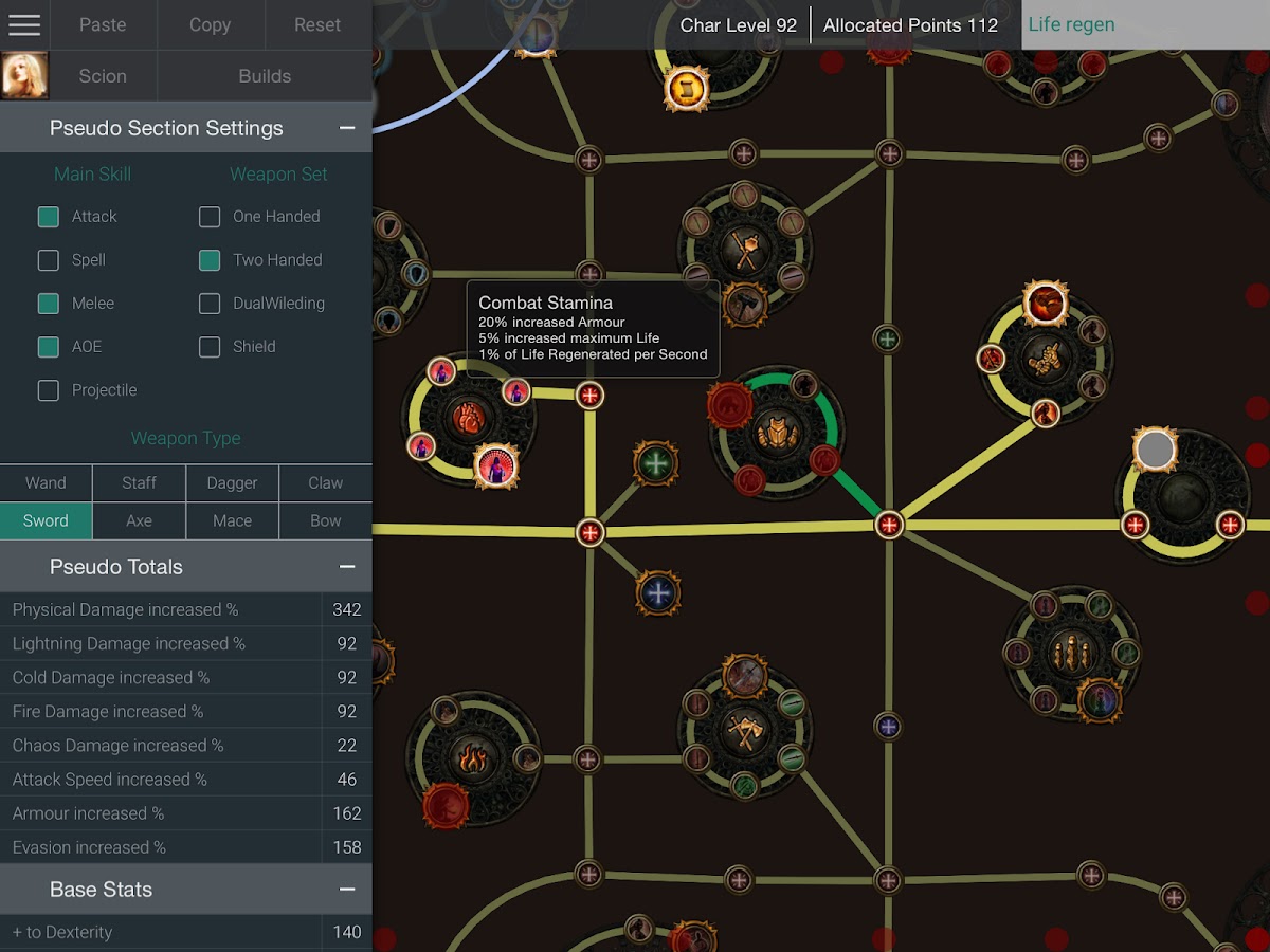 Вы можете ввести общее количество своей экипировки для жизни, маны и энергетического щита и увидеть точные значения для максимального количества, регенерации и предела похищения.