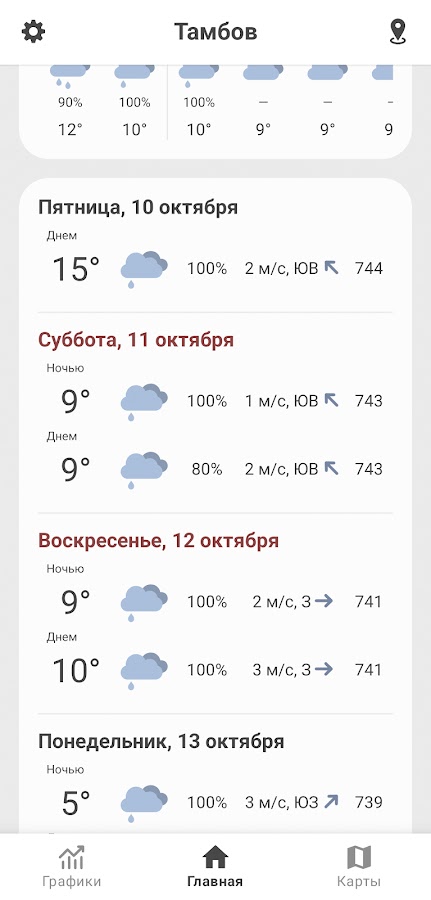 — Интерактивные карты температуры, осадков, давления, ветра и других метеопараметров.