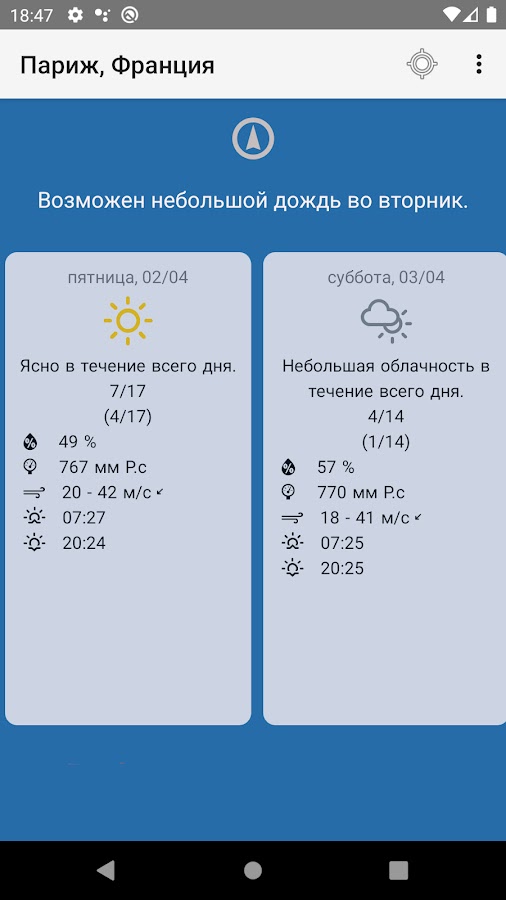 Скачайте приложение Погода на неделю для Android бесплатно - последняя версия (3.3.3) уже доступна для установки на ваш телефон или планшет.