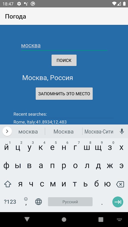 Для работы приложения требуется Интернет и Определение местоположения.