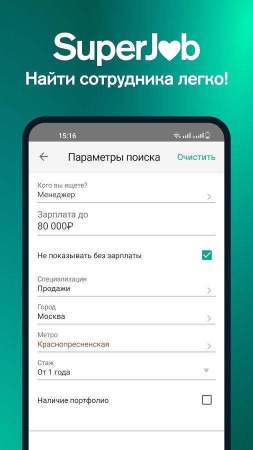 Поиск сотрудников на SuperJob