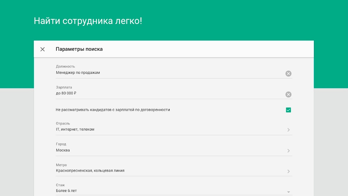 • Простые настройки, помогающие найти лучших кандидатов.
