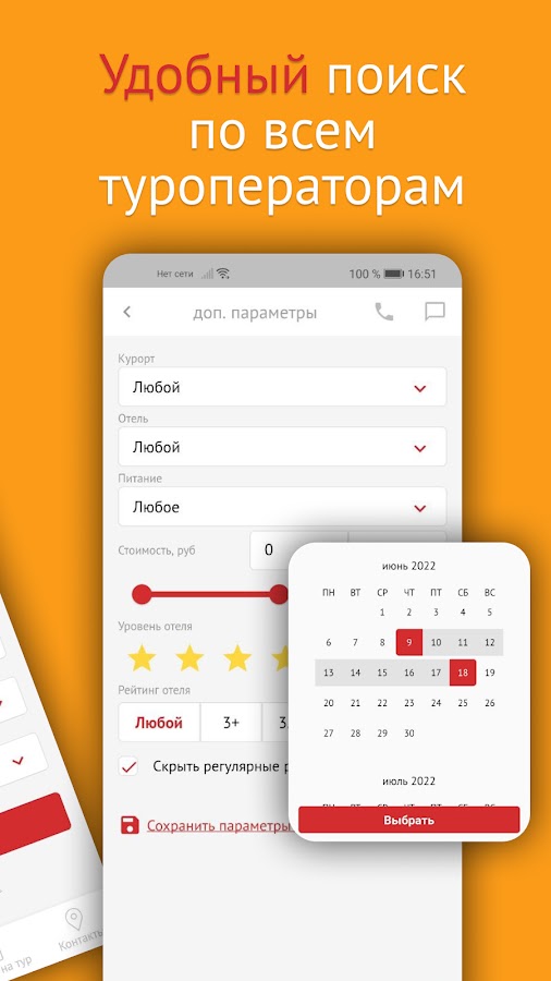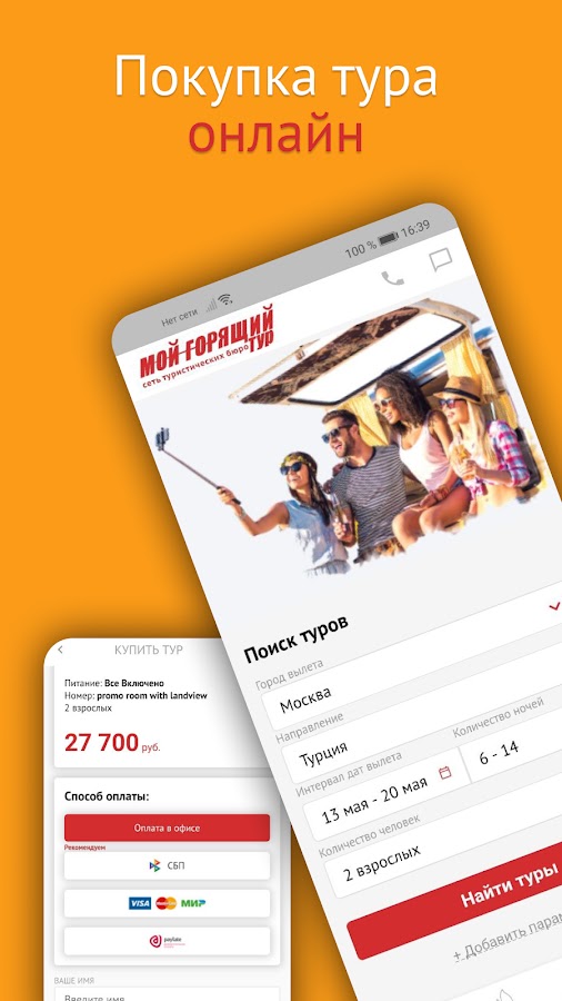 Купить выбранный тур можно онлайн прямо в мобильном приложении, без посещения офиса. Или в одном из офисов рядом с вами.