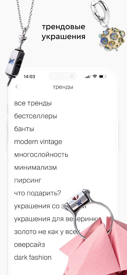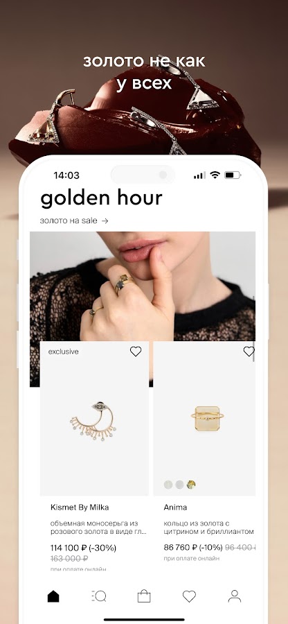 При регистрации в приложении вы получите 1000 приветственных баллов – они будут действительны в течение 14 дней с момента получения. Ими можно оплатить до 50% стоимости украшений, кроме подарочной упаковки, сертификатов и товаров со скидкой.