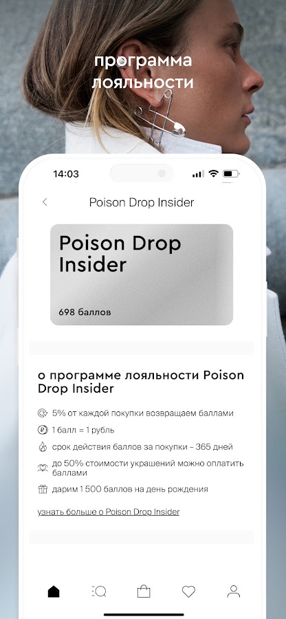 Скачайте приложение Poison Drop и найдите украшение, о котором давно мечтали. Обручальные кольца, серьги, браслеты, колье и все самое-самое!
