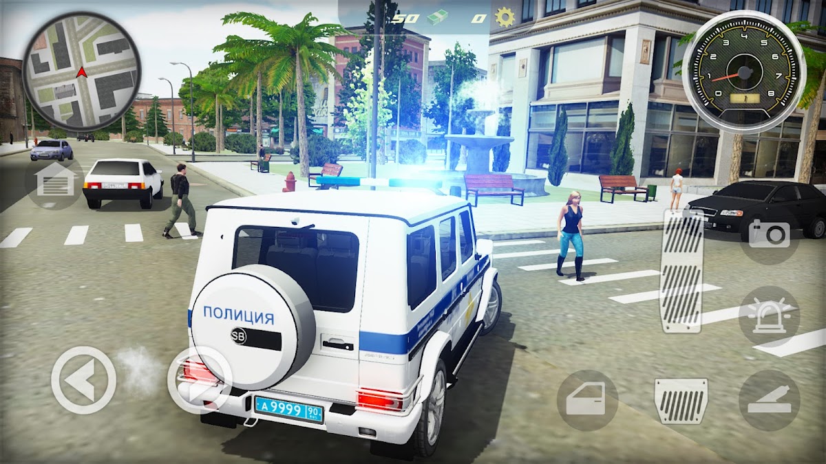 Ты инспектор полиции ДПС — русский гаишник. Тебе предстоит сесть за руль полицейской машины Гелендваген AMG G-63 патрульной службы ГАИ. Патрулируй прибрежный Парадайз-Сити — ты будешь ездить на машине по городу, выходить из тачки и ходить по улицам — собирай деньги и улучшай свой полицейский автомобиль. Выслеживай преступников, гангстеров, ментов оборотней, угонщиков машин и выписывай штрафы.