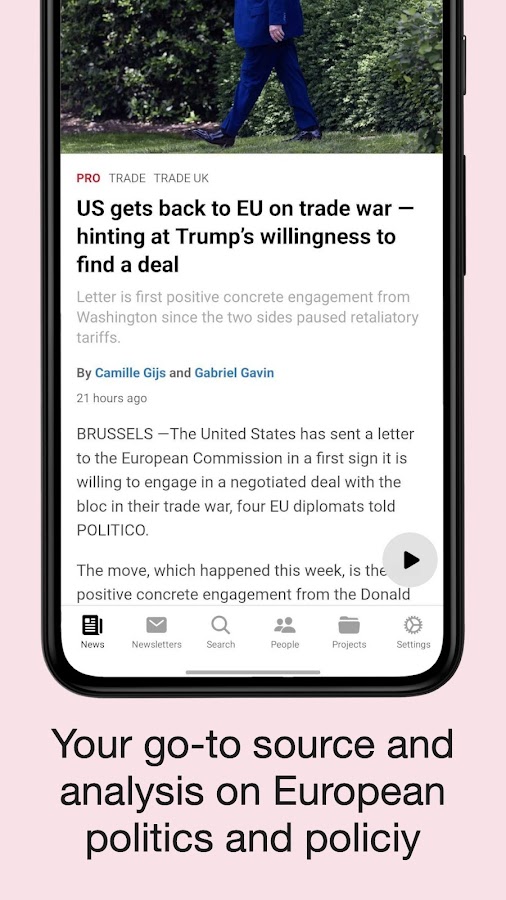 Контент POLITICO у вас на ладони, наше приложение обеспечивает