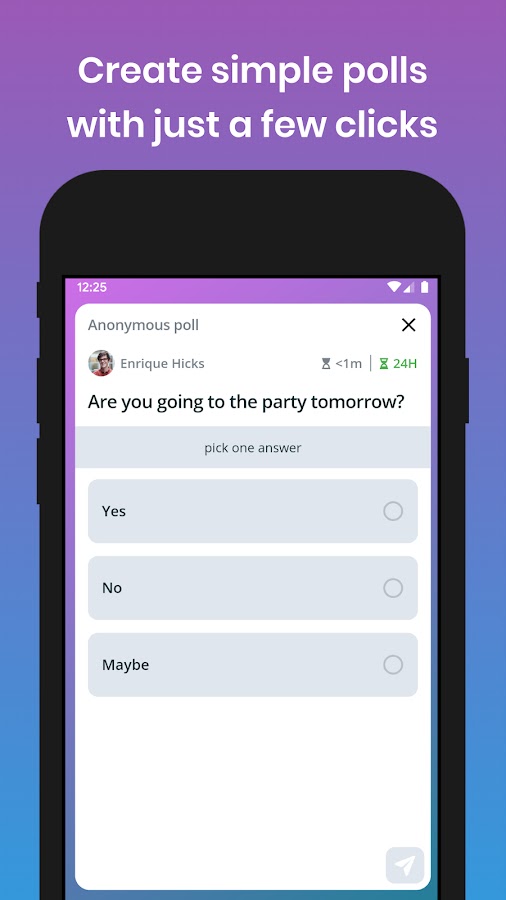 Уведомления — Не пропусти, когда твои друзья проголосуют или добавят новую опцию, ты будешь автоматически уведомлен об обновлениях в неанонимных опросах
