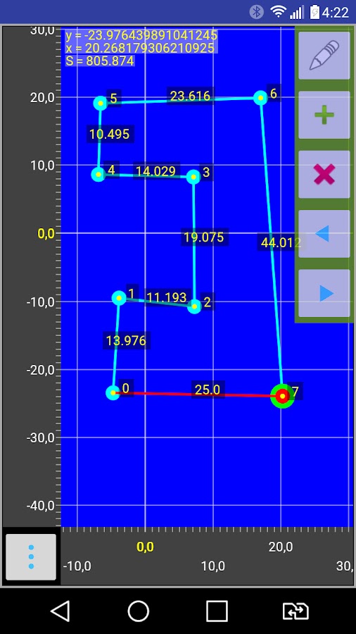 3. Путем загрузки из файла или ввода новых точек и редактированием их координат в таблице «Список точек». Список точек можно загрузить из файла CSV, TXT или буфера обмена. Например, вы можете загрузить координаты земельного участка и получить его размеры. Для отображения земельного участка используйте зональную систему координат.