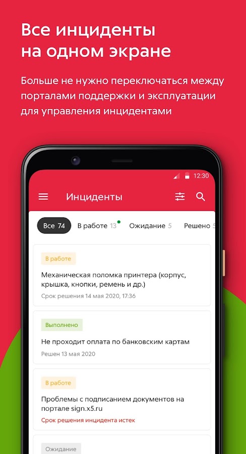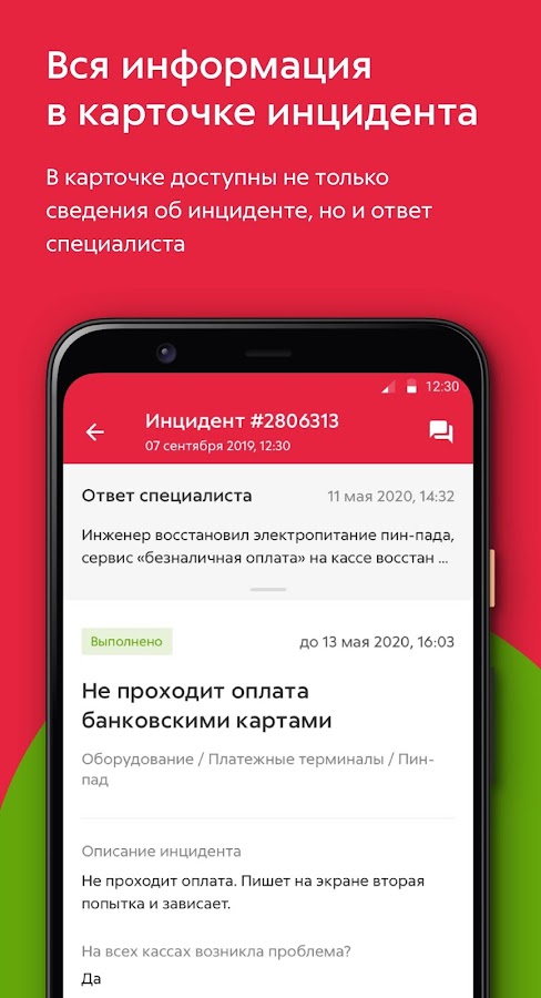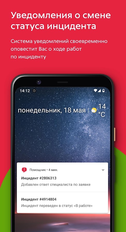 — оперативно получать информацию о решении инцидента, в том числе получая Push уведомления о решении или запросе уточняющей информации