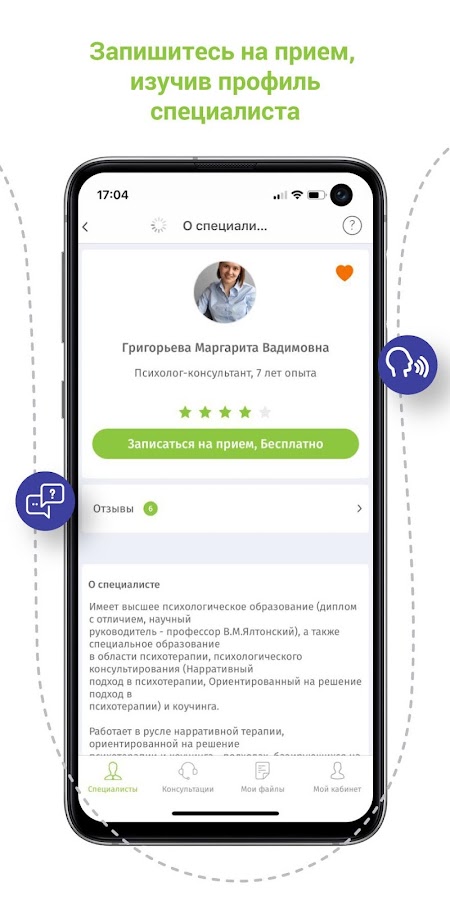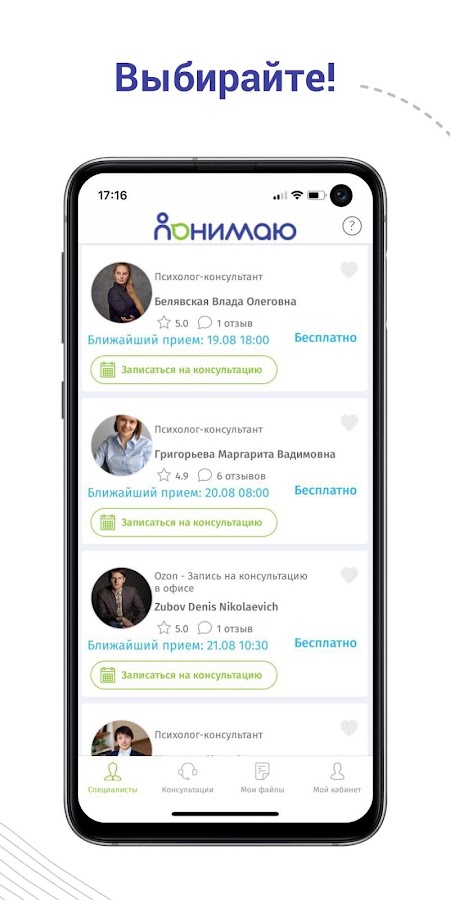 Бесплатное мобильное приложение для тех, кто ищет конфиденциальную поддержку от проверенных специалистов.