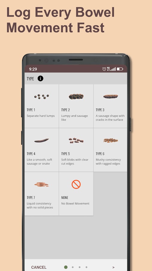 — Poop Tracker использует Бристольскую шкалу стула, чтобы помочь вам последовательно классифицировать типы стула, предоставляя стандартный способ записи каждой записи.