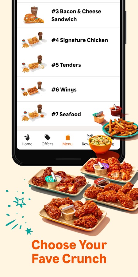 Эксклюзивные преимущества приложения: получите доступ к специальным предложениям, доступным только в нашем приложении, и приобретите свою любимую жареную курицу, гарниры и напитки по отличным ценам из нашего меню Happy Hour Midday Mardi Gras!