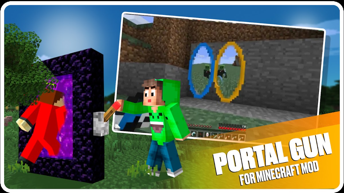 Portal gun mods превратит твои survival будни в незабываемые приключения — игра включает в себя крафт этого оружия. То есть, установив Minecraft mods portal gun, тебе будут доступны рецепты на Портал оружие для Майнкрафт. Игра MCPE Бедрок app ранее еще не видела подобной физики и воплощения такой невероятной механики, где порталы будут переносить тебя туда, куда ты пожелаешь. Портал пушка мод включает в себя крафт, а именно 1 глаз Края, 6 блоков обсидиана и 2 железных слитка дадут тебе в сочетании Портал оружие для Майнкрафт. Моды в Pocket Edition app стали настолько разнообразны и будет досадно не пригласить своих друзей для крутого survival режима вместе с Portal gun mods.
