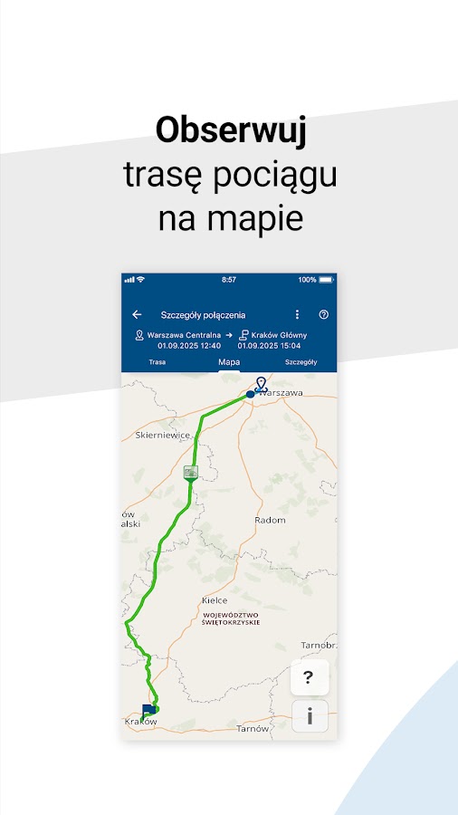 Новая версия поисковой системы и расписания всех железнодорожных перевозчиков, работающих в Польше. Единственное приложение, в котором представлены все официальные данные управляющего инфраструктурой и данные, предоставленные перевозчиками.