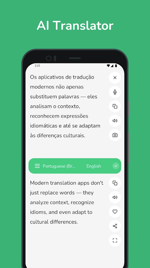 • Мгновенный перевод: получайте быстрые и точные переводы с португальского на английский и наоборот, идеально подходящие для повседневного использования.