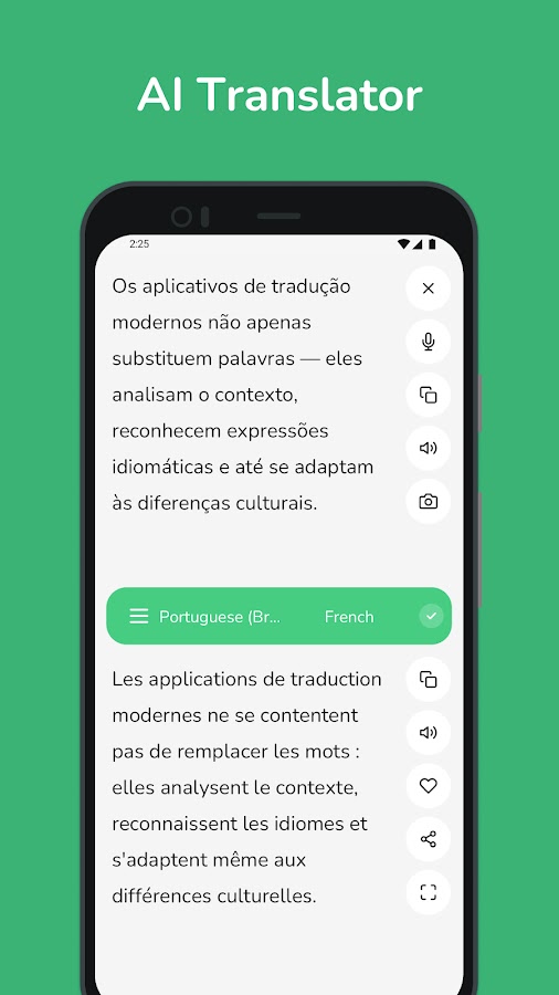 • Обучение с помощью искусственного интеллекта: наше приложение постоянно совершенствует свои переводы, адаптируясь к вашим потребностям и обеспечивая все большую точность.