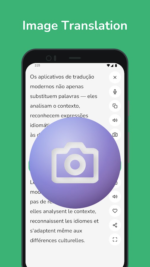 • Распознавание текста по изображениям: сделайте снимок или загрузите изображение, а затем мгновенно извлеките и переведите текст — идеальное решение для вывесок, документов или любых печатных материалов.