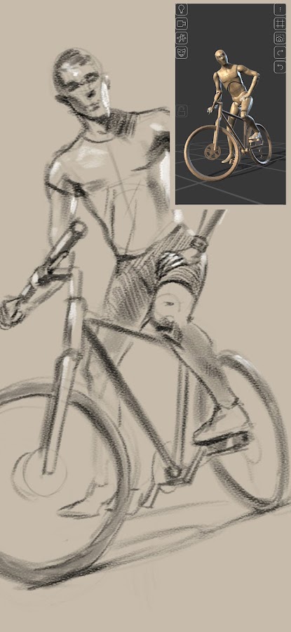 Мне нравится думать об этом приложении как о естественной эволюции традиционного манекена для рисования, я разработал его так, чтобы он имел минимум деталей и только некоторые анатомические намеки, поэтому оно хорошо сочетается с любым персонажем, которого я хочу нарисовать. Метод поворота экрана и другие автоматические функции делают процесс позирования более быстрым и динамичным. После последних обновлений он даже поддерживает функции обратной кинематики, имеет женский манекен и галерею реквизита.