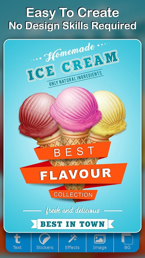 Создавайте рекламные плакаты, рекламу, предлагайте объявления, обходите фотографии на ходу с удивительными фонами, текстурой, эффектами, шрифтами, наклейкой и обращайте внимание на нужное вам внимание.