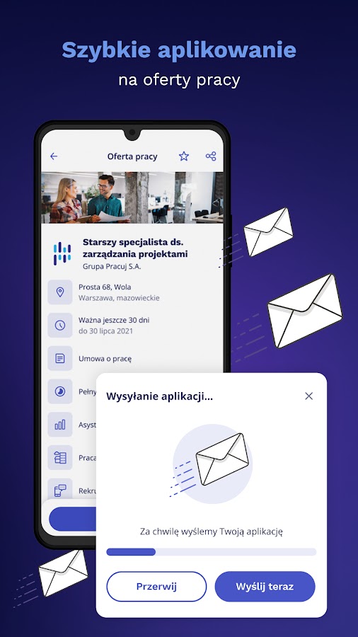 В приложении Pracuj.pl мы собрали тысячи объявлений о работе в Польше, удовлетворяя тем самым потребности как новичков, так и опытных специалистов в каждой отрасли.