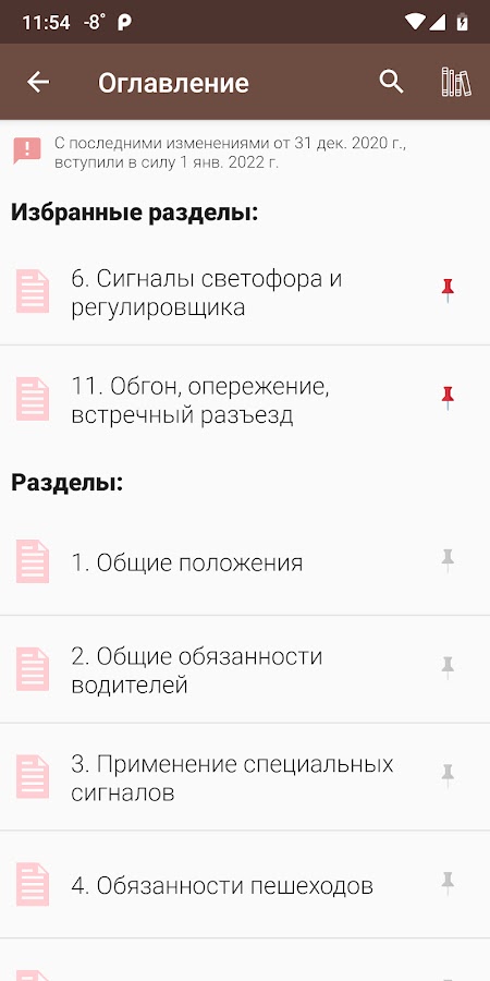 — Список избранного: вы можете выделять пункты ПДД, знаки, штрафы в свой список избранного, с последующим быстрым доступом к ним