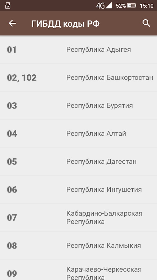 — Коды регионов: в приложении вы можете просмотреть актуальные коды регионов ГИБДД