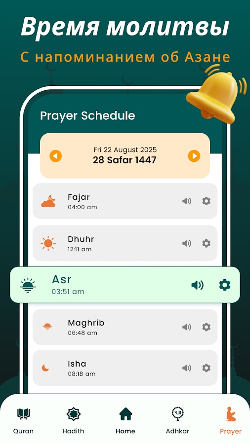Islamic Prayer Times: Qibla Finder Never miss a Salat & Read Al Quran Kareem & get an opportunity to connect with your faith. Prayers App provides accurate prayer timetables, Qibla direction, Hadith, Azan times, and Namaz alerts.