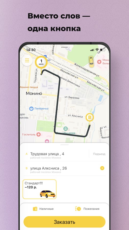Используйте опцию “Вызвать такси другому” в разделе “Пожелания” и укажите его номер телефона. Когда такси подъедет, на указанный номер придет СМС, а вам — сообщение в приложении.