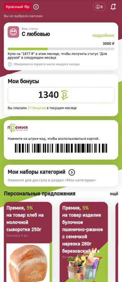 «Премия» — самый удобный способ пользоваться всеми преимуществами программы лояльности в гастрономах «Красный Яр» и дискаунтерах «Батон»:
