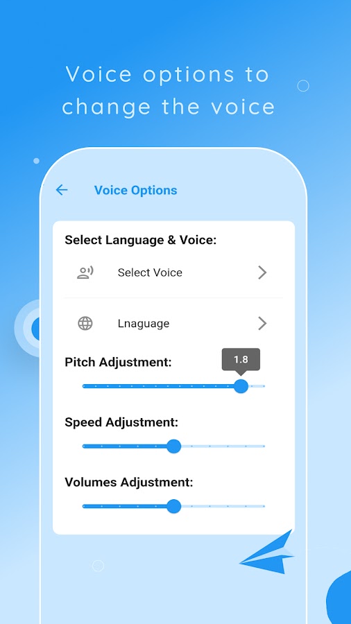 Пользователи этого приложения для преобразования текста в речь через AI могут регулировать высоту голоса, чтобы сделать голос более толстым или тонким. Даже пользователи могут регулировать скорость и громкость в соответствии со своими потребностями.