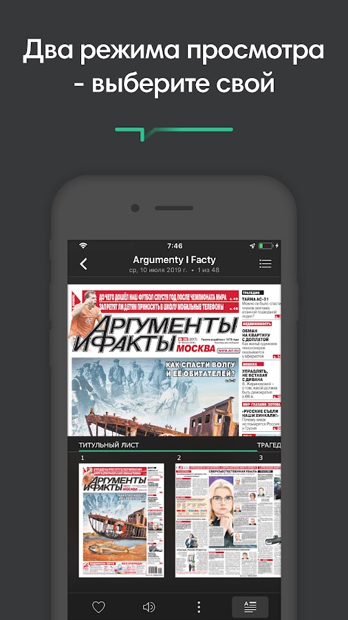 Читайте статьи газет и журналов в ту же минуту, когда они выходят в продажу. Переключайтесь между исходной печатной версткой и текстовой версией, оптимизированной для мобильного чтения. Кроме того, оживите статьи с помощью режима прослушивания, перевода текста одним нажатием и комментируя.