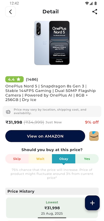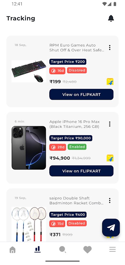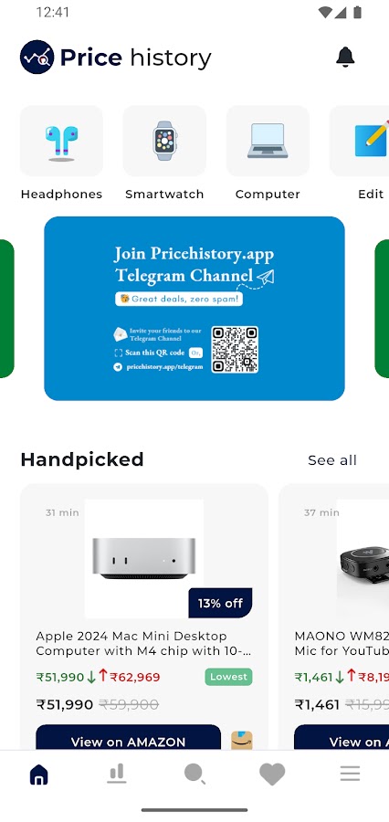 ✔️ Отслеживание цен и исторические графики для Amazon India и Flipkart.