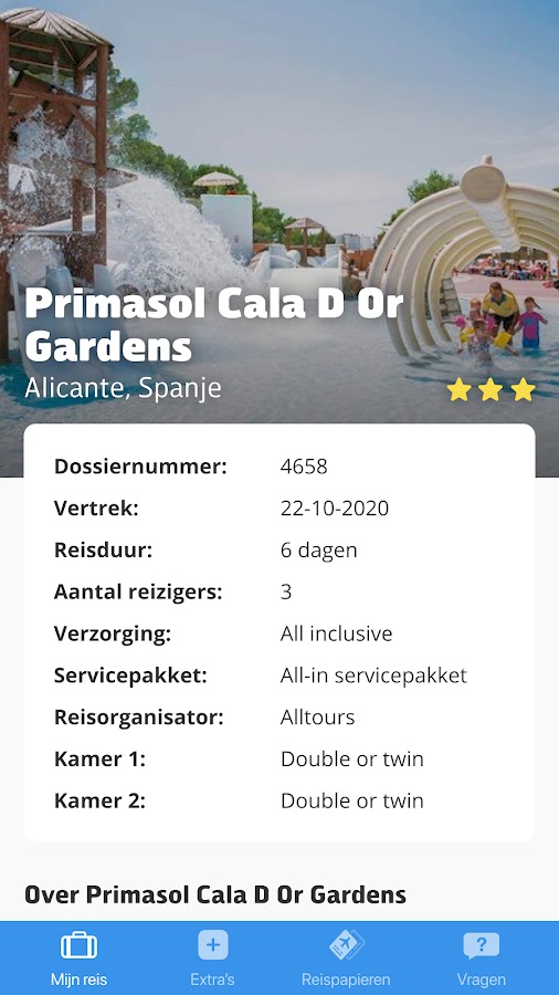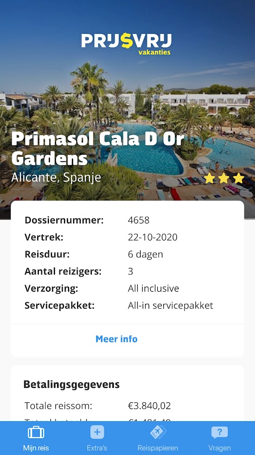 Дома, в дороге и во время отпуска вся информация о путешествии всегда под рукой. Приложение Prijsvrij Vakanties позволяет легко просматривать бронирование на мобильных устройствах и планшетах! Просмотрите все детали бронирования вашего отпуска.