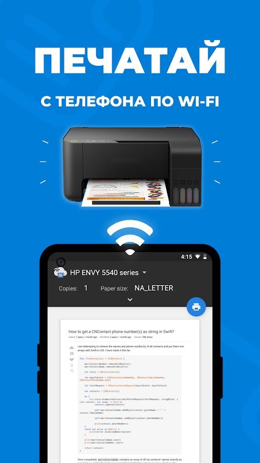 • Легкое подключение: Просто подключитесь к той же сети Wi-Fi, что и ваш принтер, чтобы разблокировать все функции.