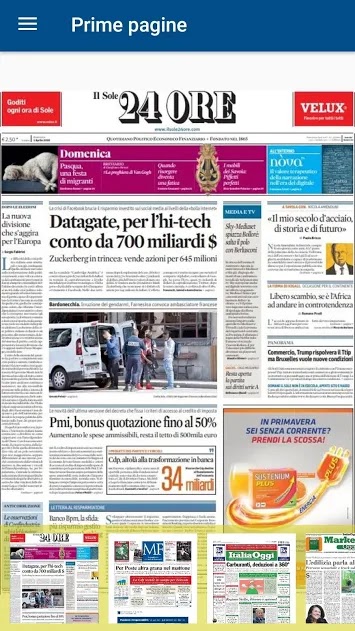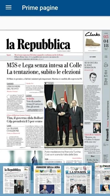 Prime pagine позволит вам оставаться в курсе событий, просматривая первые полосы многих национальных и местных итальянских газет. Ознакомьтесь с выпусками таких газет, как La Repubblica, La Stampa, La Gazzetta dello Sport, Il Corriere dello Sport и многих других, включая большое количество иностранных газет. Увеличение масштаба или отображение любой страницы в полноэкранном режиме. Итальянские газеты содержат более 100 различных первых полос и являются лучшим способом консультирования газет Италии.
