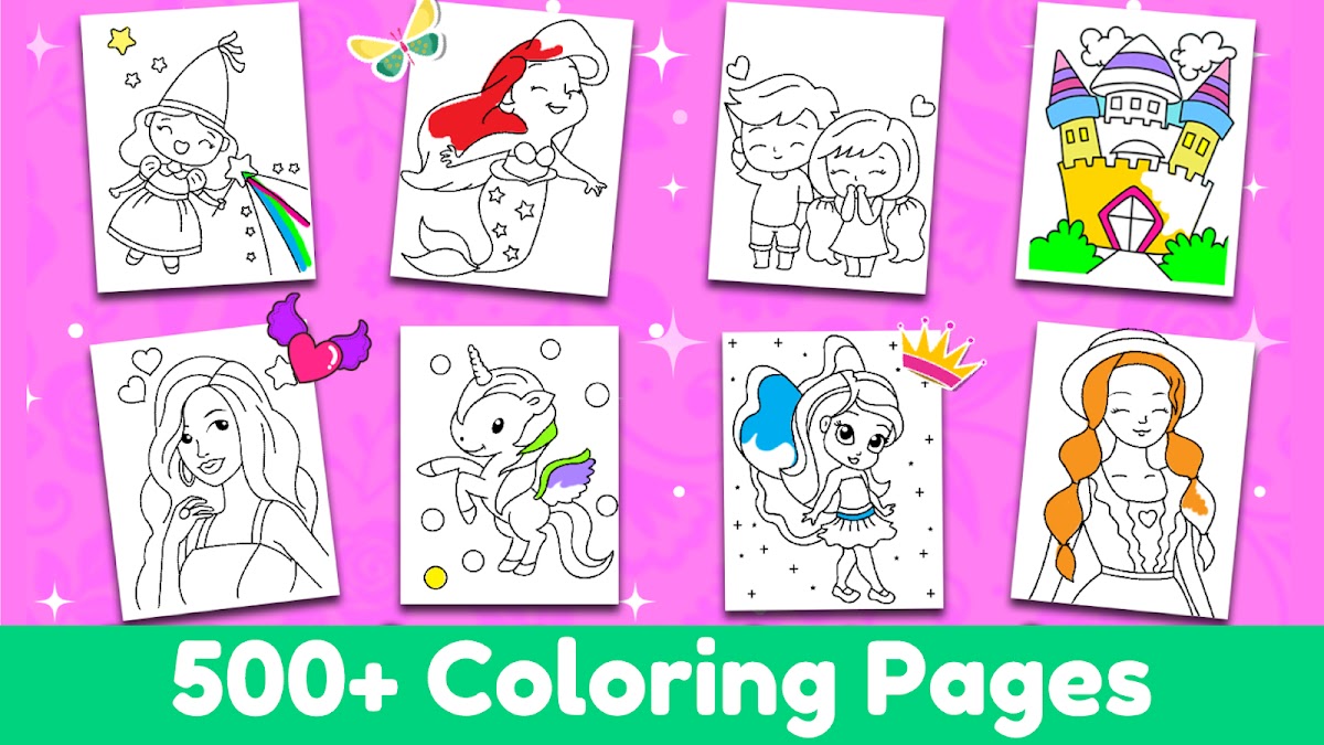Приложение Принцесса Раскраски для Девочек содержит большую коллекцию красивых раскрасок с принцессами. Раскрашивай классные платья принцессы, красивые прически принцессы, модные короны и крылья волшебных фей. Это действительно классная раскраска с принцессами!