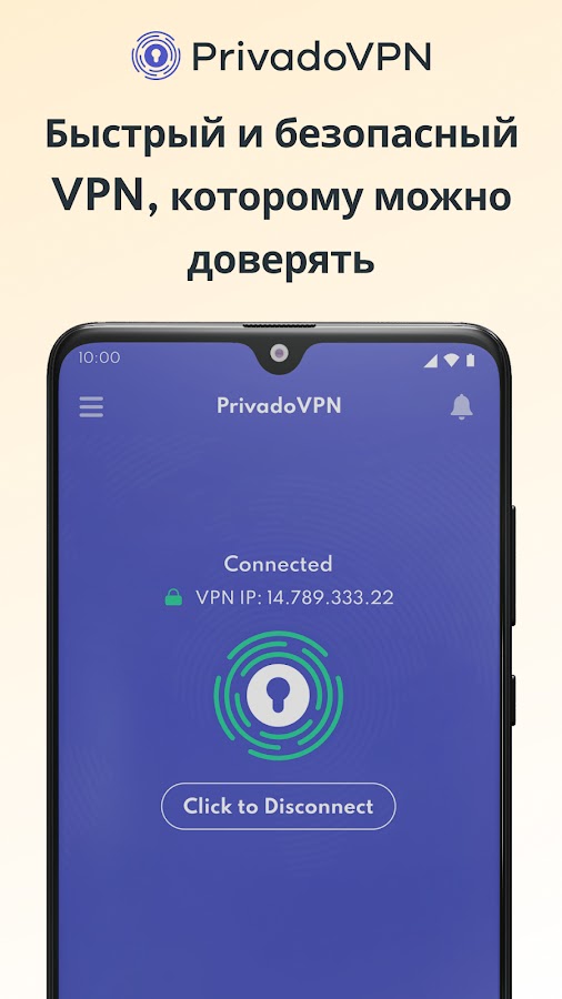 PrivadoVPN — это бесплатный, быстрый и безопасный прокси-сервер и VPN без рекламы. Один щелчок, и вы будете пользоваться Интернетом безопасно и анонимно. 100% быстрый бесплатный VPN для Android и Wear OS на нашем VPN-прокси.